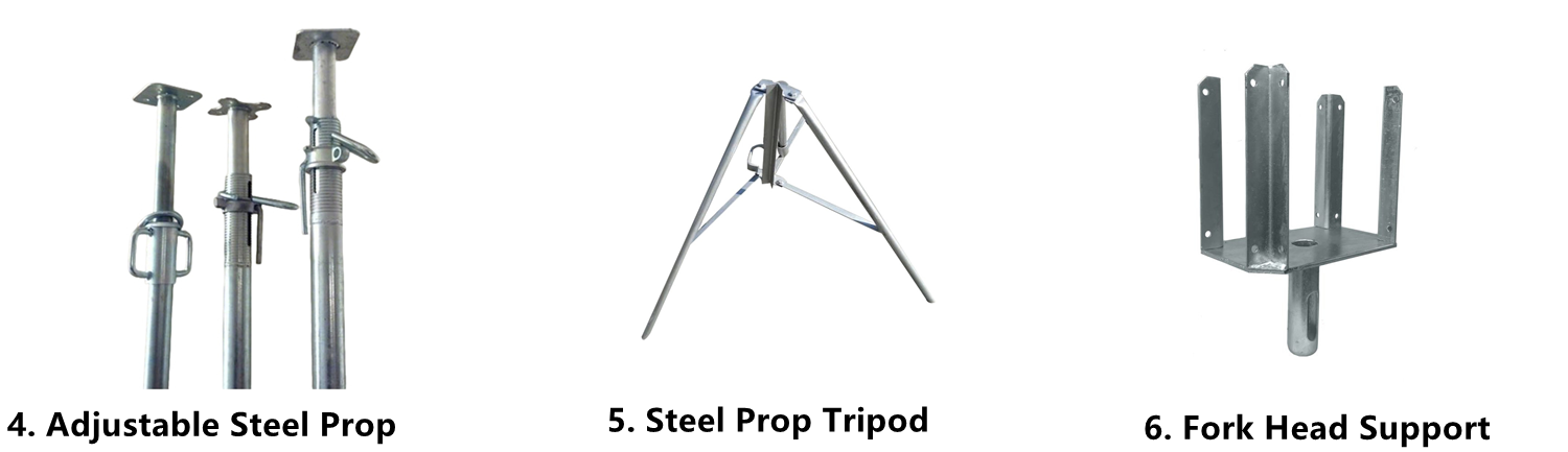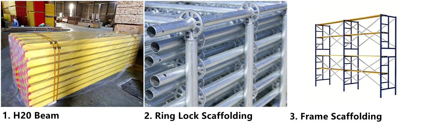 In addition, we also produce a full range of supporting systems, including H20 formwork beams, steel props, tripods, forks and scaffolding.